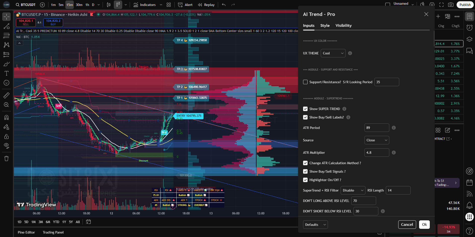 معاملات اسکالپ و روزانه (Scalping & Day Trading): قابلیت تنظیم سریع ATR و استفاده از سطوح Pivot Support/Resistance، این اندیکاتور را به ابزاری عالی برای اسکالپرها تبدیل میکند.