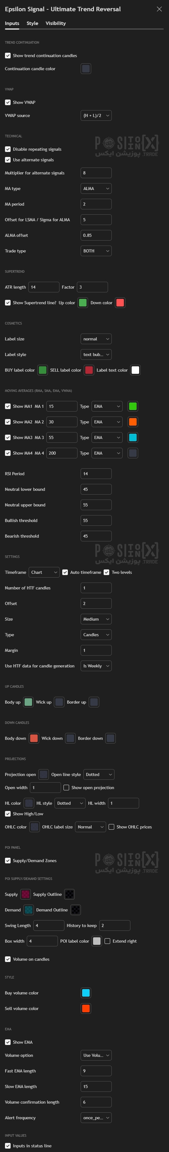 اندیکاتور Epsilon Signal صرفاً یک اندیکاتور نیست، بلکه یک دستیار هوشمند است که پیچیدگیهای بازار را برای شما ساده میکند. این یک هزینه نیست، بلکه سرمایهگذاری روی ابزاری است که دقت معاملات شما را به سطح استانداردهای جهانی میرساند. با استفاده از محاسبات پیشرفته این اسکریپت، تمرکز خود را بر روی سودآوری بگذارید و اجازه دهید اندیکتور اپسیلون کارهای سخت تحلیل را برای شما انجام دهد!