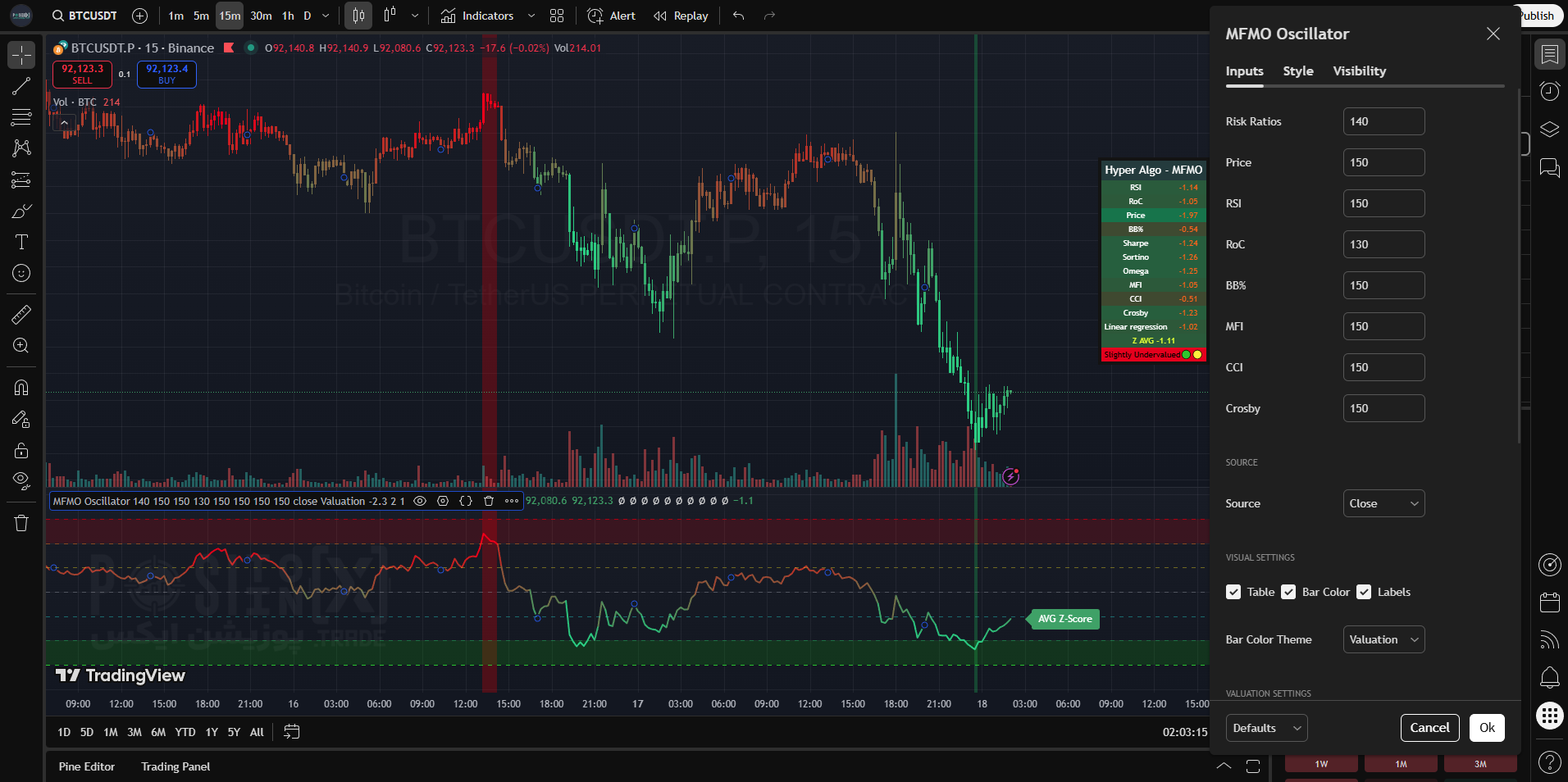 شناسایی مناطق “Undervalued”: زمانی که Average Z-Score به زیر سطوح Oversold (مثلاً −2) سقوط میکند، سیستم شرایط “Strongly Undervalued” (بشدت کمارزش) را اعلام میکند، که این موقعیتها اغلب به عنوان بهترین فرصتهای خرید شناخته میشوند.