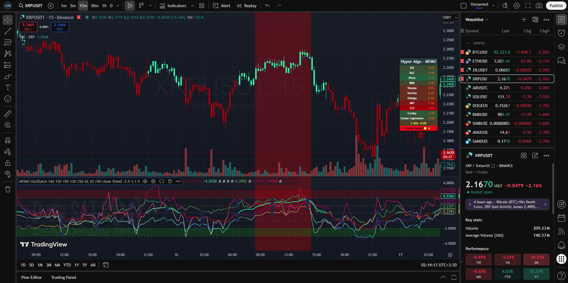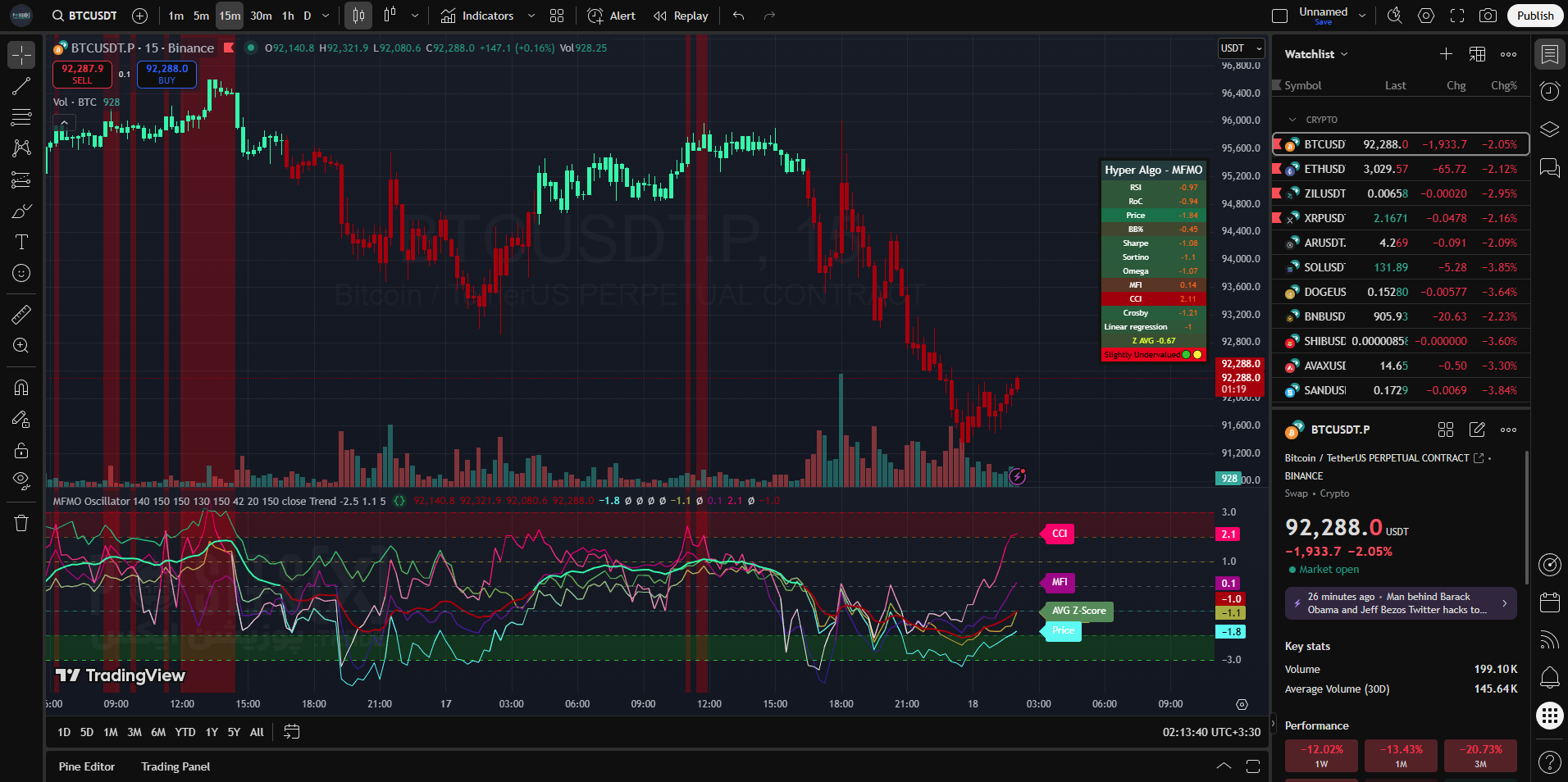 بازار کریپتوکارنسی: با توجه به نوسانات بالای کریپتو، اندیکاتور MFMO با استفاده از Z-Score و معیارهای ریسک (Sharpe/Sortino)، امکان شناسایی نواحی برگشتپذیر را با دقت بیشتری فراهم میکند.
